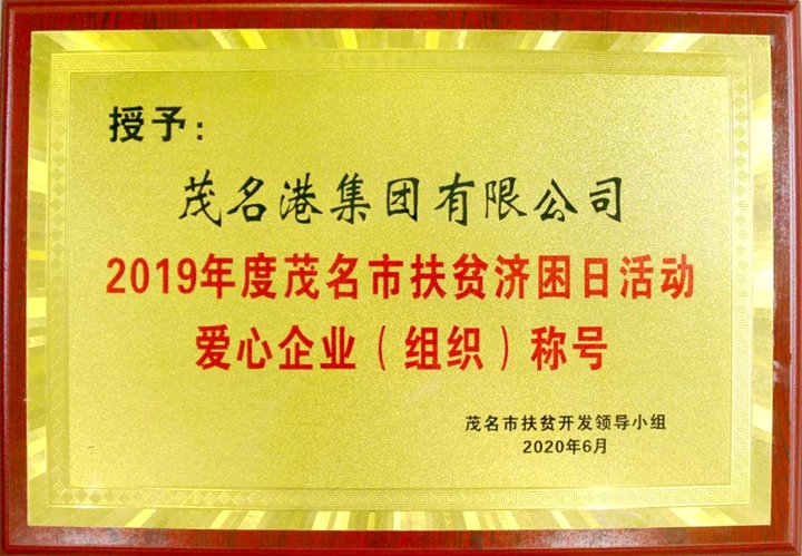 近日,在茂名市委、市政府舉行的2020年“廣東扶貧濟(jì)困日”活動儀式上,茂名港集團(tuán)被授予2019年度茂名市扶貧濟(jì)困日活動“愛心企業(yè)(組織)”榮譽(yù)稱號,對集團(tuán)的扶貧濟(jì)困工作予以充分肯定。集團(tuán)黨委書記、董事長劉乃英代表集團(tuán)出席了本次活動。