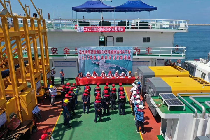 30萬噸級原油碼頭項目經(jīng)理部聯(lián)合市海事局、市海上搜救中心等單位開展防臺防風綜合應(yīng)急演練,期間模擬消防救火、人員落水搶救、溢油處置等情景進行處置,強化合作,鍛煉隊伍,有效提高“三防”應(yīng)急處置能力;