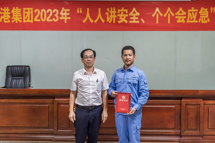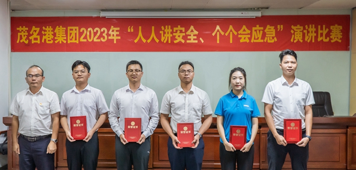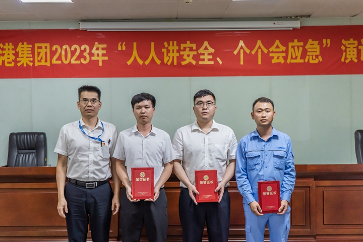 ▲長興石化公司蔡升高、李俊毅、何雄勝,濱?毓晒窘窈、港口經(jīng)營公司張斯瑜榮獲三等獎 比賽期間還進(jìn)行安全生產(chǎn)知識有獎?chuàng)尨瓠h(huán)節(jié),觀眾積極踴躍舉手參與,現(xiàn)場氣氛激烈。 蔡光章對本次“人人講安全、個個會應(yīng)急”演講比賽給予充分肯定。他表示此次演講比賽選手立足本職崗位、結(jié)合工作實際,多角度多維度闡述對安全生產(chǎn)工作所感、所悟、所思,詮釋了安全生產(chǎn)的重要意義,營造了“人人講安全、個個會應(yīng)急”濃厚氛圍。他強(qiáng)調(diào),集團(tuán)上下要樹牢安全理念,重視應(yīng)急管理,掌握應(yīng)急救援的基本流程、方法和要求,學(xué)會自救互救等本領(lǐng),切實提高突發(fā)事件預(yù)防和應(yīng)急處置能力,為集團(tuán)高質(zhì)量發(fā)展筑牢安全屏障。 本次比賽吸引了集團(tuán)機(jī)關(guān)各部室及下屬企業(yè)代表共50多人到現(xiàn)場觀賽聆聽。