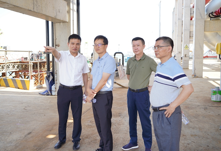 8月9日,中國(guó)人民銀行茂名市中心支行黨委書(shū)記、行長(zhǎng)楊越明在交通銀行茂名分行黨委書(shū)記、行長(zhǎng)吳斌一行的陪同下,到訪茂名港集團(tuán)博賀新港區(qū)現(xiàn)場(chǎng),調(diào)研博賀新港區(qū)項(xiàng)目建設(shè)情況。集團(tuán)黨委書(shū)記、董事長(zhǎng)王志華陪同調(diào)研。