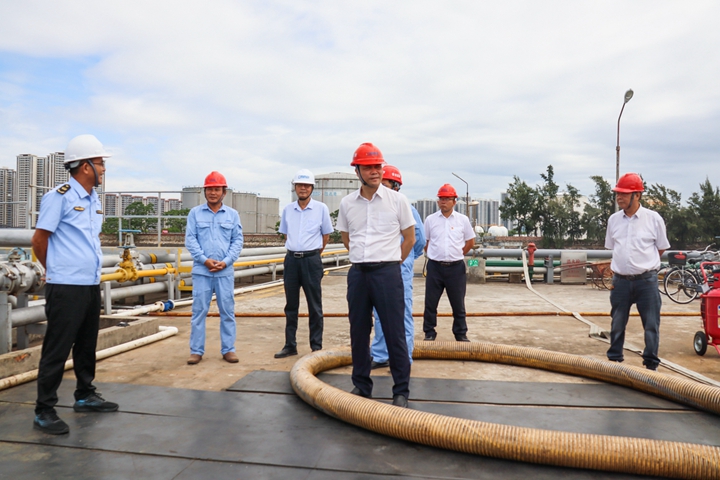 每到一處,督查組詳細(xì)檢查臺風(fēng)防御措施落實情況,并認(rèn)真聽取各單位中秋國慶期間生產(chǎn)經(jīng)營和項目建設(shè)進(jìn)展情況,充分肯定近段時間的工作成效,并對下階段安全生產(chǎn)各項工作提出要求。 肖炳璋強(qiáng)調(diào)一要密切關(guān)注臺風(fēng)動向,加強(qiáng)研判,落實落細(xì)落具體防御措施。各單位要高度警惕,杜絕麻痹思想,強(qiáng)化極限思維,迅速進(jìn)入臨戰(zhàn)狀態(tài),嚴(yán)格落實防風(fēng)防汛工作責(zé)任,密切關(guān)注天氣變化,按照“三防”應(yīng)急預(yù)案,及時做實級別響應(yīng),全面落實海上防臺風(fēng)“六個百分百”措施和臨災(zāi)排險“八個再查一遍”工作要求,盯緊關(guān)鍵環(huán)節(jié)和重點部位的安全防范,摸清底數(shù),努力做到“主動避讓、提前避讓、預(yù)防避讓”,防止發(fā)生次生災(zāi)害;加強(qiáng)應(yīng)急救援準(zhǔn)備,一旦發(fā)生險情及時匯報,并全力投入搶險救援,及時高效科學(xué)處置。二要錨定奮斗目標(biāo),群策群力,毫不松懈抓實抓到位安全生產(chǎn)保障工作。各單位要對照年度工作目標(biāo),科學(xué)研判形勢任務(wù),持續(xù)查補(bǔ)差距短板,堅定信心,靶向用力,保持攻堅克難的精神狀態(tài),堅定不移朝著年度目標(biāo)勇毅前行;要認(rèn)真學(xué)習(xí)貫徹習(xí)近平總書記關(guān)于安全生產(chǎn)重要論述,統(tǒng)籌做好發(fā)展和安全,采取果斷有力措施,責(zé)任到崗到人,強(qiáng)化作業(yè)環(huán)節(jié)風(fēng)險管控,聚焦重大風(fēng)險隱患排查治理,持續(xù)提升安全管理效能和本質(zhì)安全水平,織密織牢安全風(fēng)險防控網(wǎng),善始善終做好安全防范各項工作,堅決防范遏制事故發(fā)生。