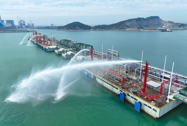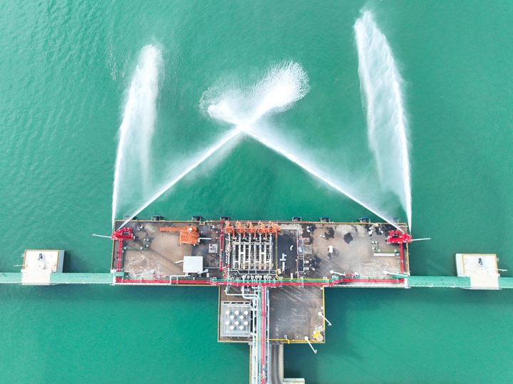 2023年12月27日,隨著8條“水龍”噴涌而出,博賀新港區(qū)東區(qū)化工碼頭消防系統(tǒng)聯(lián)運(yùn)調(diào)試工作取得圓滿成功,這標(biāo)志著繼油品碼頭之后,茂名港集團(tuán)化工碼頭也完成了由項(xiàng)目建設(shè)轉(zhuǎn)向生產(chǎn)運(yùn)營(yíng)的關(guān)鍵一環(huán)。