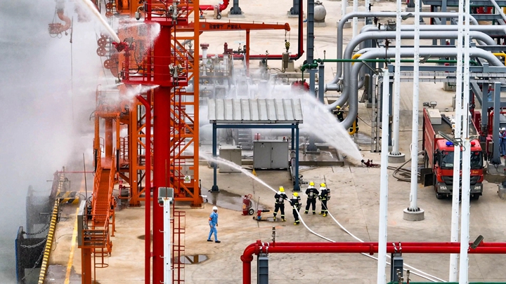 此次演練是集團(tuán)在博賀新港區(qū)投產(chǎn)前最接近實(shí)操的實(shí)戰(zhàn)演練,旨在提高企業(yè)處理泊位緊急事故的應(yīng)變和整體協(xié)調(diào)能力,提高應(yīng)急人員對泊位突發(fā)事故的應(yīng)急指揮、操作聯(lián)動和救援水平。在各方的共同努力下,經(jīng)過1小時(shí)緊張有序的應(yīng)急處置,成功控制油料泄漏事故,圓滿完成演練任務(wù),標(biāo)志著博賀新港區(qū)油品碼頭和化工碼頭投產(chǎn)運(yùn)營工作已完成關(guān)鍵節(jié)點(diǎn)。 陳力表示,此次演練增強(qiáng)了轄區(qū)碼頭企業(yè)、船舶企業(yè)及相關(guān)單位的防污染意識和聯(lián)合作戰(zhàn)能力,有效落實(shí)了港口單位污染防治主體責(zé)任,將有力推動港口運(yùn)輸生產(chǎn)和海洋環(huán)境保護(hù)協(xié)調(diào)發(fā)展。 李昱祺表示,本次演練充分展示了集團(tuán)下屬子公司在應(yīng)急指揮、操作聯(lián)動和救援水平等方面的綜合管理能力,為后續(xù)投產(chǎn)運(yùn)營提供了寶貴經(jīng)驗(yàn)。下一步,集團(tuán)將繼續(xù)做好人員培訓(xùn)、常態(tài)化應(yīng)急演練等工作,進(jìn)一步提高協(xié)調(diào)作戰(zhàn)能力,為茂名港域平安港口建設(shè)貢獻(xiàn)力量。 此次演練還得到了茂名石化北山嶺消防中隊(duì)、廣東海安水運(yùn)技術(shù)服務(wù)有限公司、茂名昌利船舶有限公司、茂名眾和海上防污工程有限公司等單位的大力支持與協(xié)助。