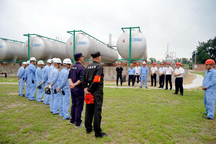 按照集團(tuán)黨委工作部署,4月2日,集團(tuán)黨委副書記、總裁肖炳璋率隊(duì)深入到各下屬企業(yè)、各項(xiàng)目經(jīng)理部督查安全生產(chǎn)工作,并隨機(jī)抽查中油王港公司球罐區(qū)碳五泄漏的應(yīng)急處置。