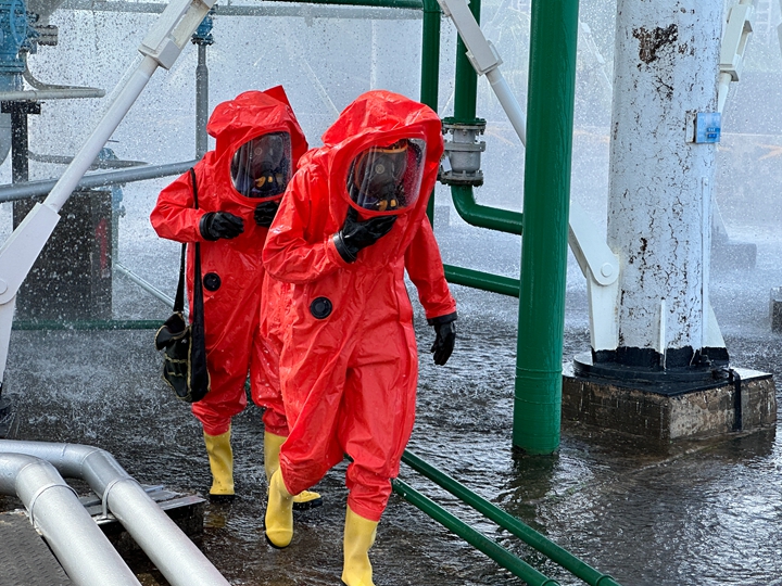 演練在中油王港公司的1號氣庫區(qū)域,由于設(shè)備老化,導(dǎo)致1#球罐液化石油氣進(jìn)罐閥門泄漏,泄漏的液化石油氣迅速揮發(fā),在1#球罐區(qū)域形成大量可燃?xì)怏w,一旦遇上火花就會發(fā)生火災(zāi)爆炸,情況萬分危急。14時38分,巡檢人員在現(xiàn)場發(fā)現(xiàn)泄漏,第一時間向值班經(jīng)理報(bào)告;值班經(jīng)理立即啟動了班組應(yīng)急預(yù)案,并同步上報(bào)公司領(lǐng)導(dǎo)及安全環(huán)保部。應(yīng)急搶險(xiǎn)人員迅速穿戴好專業(yè)防護(hù)裝備,攜帶搶險(xiǎn)工具抵達(dá)泄漏現(xiàn)場。在做好自身安全防護(hù)的前提下,關(guān)閉泄漏上下游閥門,切斷氣源,阻止液化石油氣的進(jìn)一步泄漏;利用消防水槍、水炮對泄漏區(qū)域進(jìn)行噴水稀釋,降低可燃?xì)怏w的濃度,防止發(fā)生爆炸。在整個搶險(xiǎn)過程中,搶險(xiǎn)人員嚴(yán)格遵循操作規(guī)程,確保操作安全、高效,演練取得了圓滿成功。 演練結(jié)束后,中油王港公司立即組織召開了演練總結(jié)評估會。公司領(lǐng)導(dǎo)對此次演練給予了充分肯定,認(rèn)為演練組織嚴(yán)密、指揮得當(dāng)、響應(yīng)迅速、處置有效,達(dá)到了預(yù)期的演練目的,同時,也指出了演練過程中存在的一些不足之處,如個別應(yīng)急救援人員對應(yīng)急設(shè)備的操作不夠熟練、信息溝通還不夠順暢等,要求公司安全、生產(chǎn)部門針對這些問題制定整改措施,進(jìn)一步完善應(yīng)急處置方案,加強(qiáng)應(yīng)急培訓(xùn)和演練,不斷提升公司的應(yīng)急處置能力。(通訊員:黎 強(qiáng)) |