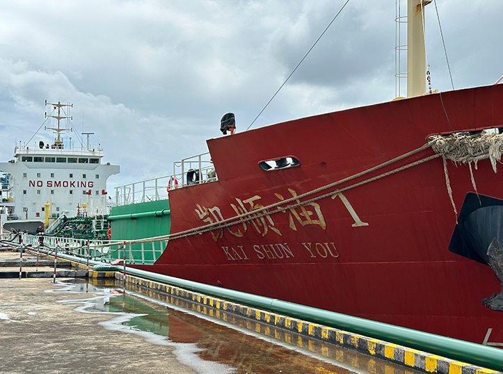 作業(yè)當日,“凱順油1”油輪安全靠泊碼頭,油罐車準時抵達指定卸油位置,經(jīng)船方、公司及車輛三方聯(lián)合檢查并確認無誤后,卸油作業(yè)正式啟動:操作人員全程監(jiān)護,密切關注碼頭油輪、油罐車、卸油管道及閥門接口狀態(tài),確保無泄漏、無溢油;卸油船員、司機及公司操作人員堅守崗位,隨時應對突發(fā)情況;中控人員實時監(jiān)控卸油速度與壓力,確保設備在額定負荷下平穩(wěn)運行。