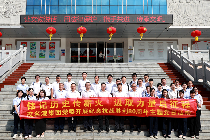 為紀(jì)念中國人民抗日戰(zhàn)爭暨世界反法西斯戰(zhàn)爭勝利80周年,緬懷革命先烈、銘記歷史榮光,大力弘揚(yáng)偉大抗戰(zhàn)精神,近日,茂名港集團(tuán)黨委組織40余名黨員干部職工,開展“銘記歷史傳薪火 汲取力量啟征程”主題黨日活動(dòng),引導(dǎo)黨員筑牢信仰之基,凝聚奮進(jìn)力量。集團(tuán)黨委委員、紀(jì)委書記、監(jiān)察專員周文良,黨委委員、副總裁周成參加活動(dòng)。